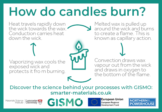 - Convection draws wax vapour out from the wick and draws in oxygen to the bottom of the flame.
