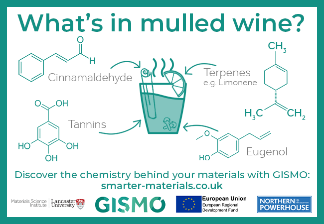 What’s in mulled wine? A few of the ingredients include cinnamaldehyde, terpenes such as limonene, tannins, and eugenol.