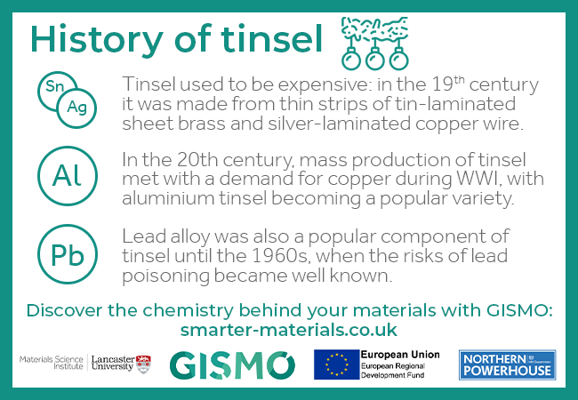 - In the 20th century, mass production of tinsel met with a demand for copper during WWI, with aluminium tinsel becoming a popular variety,